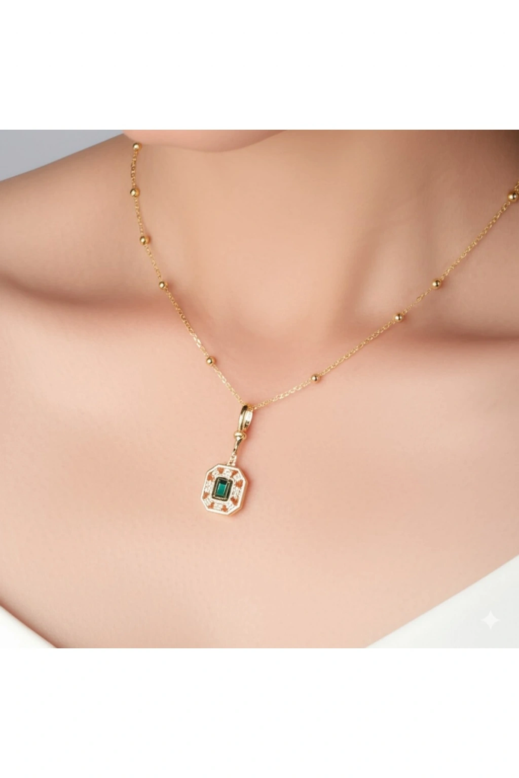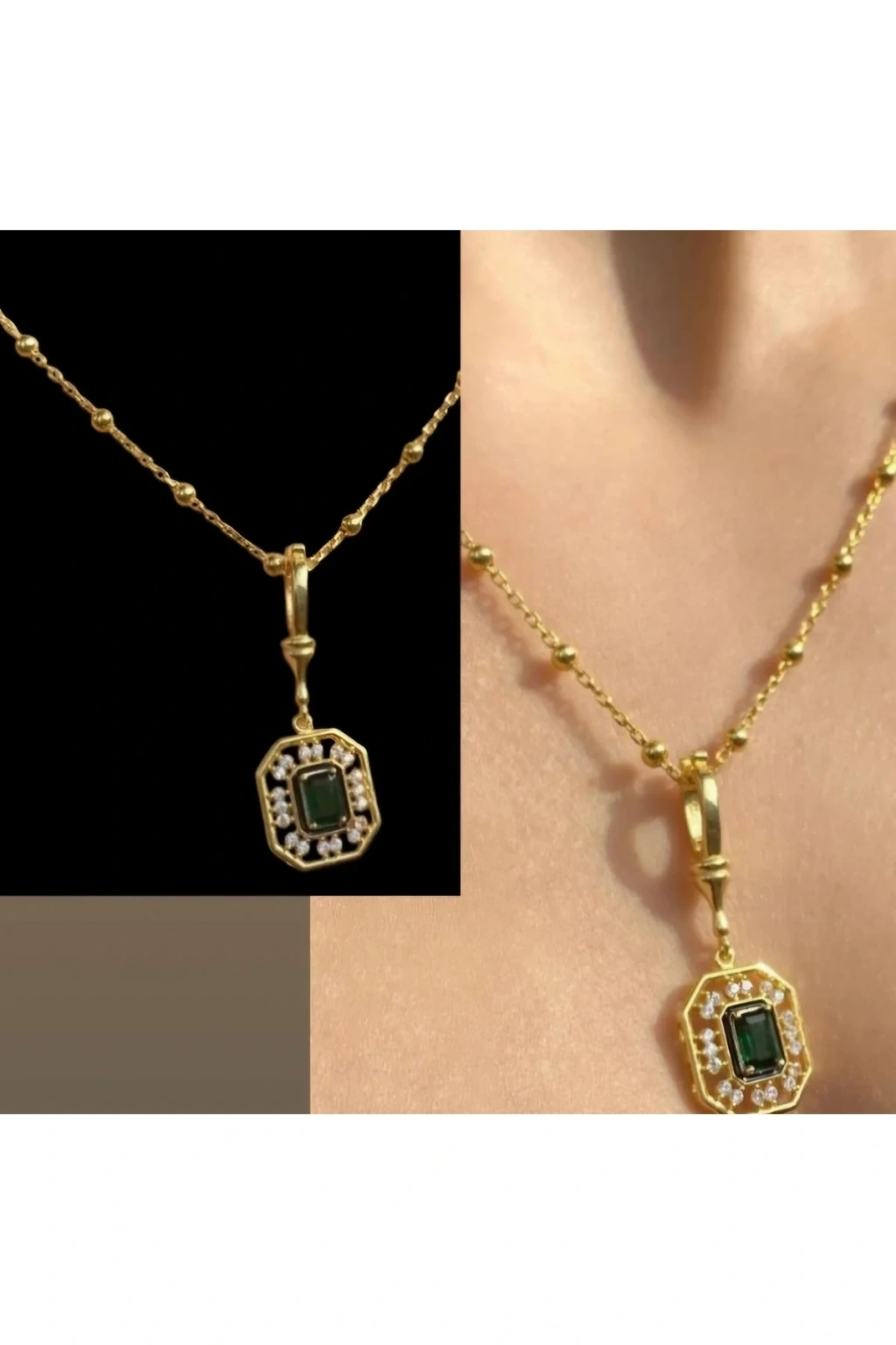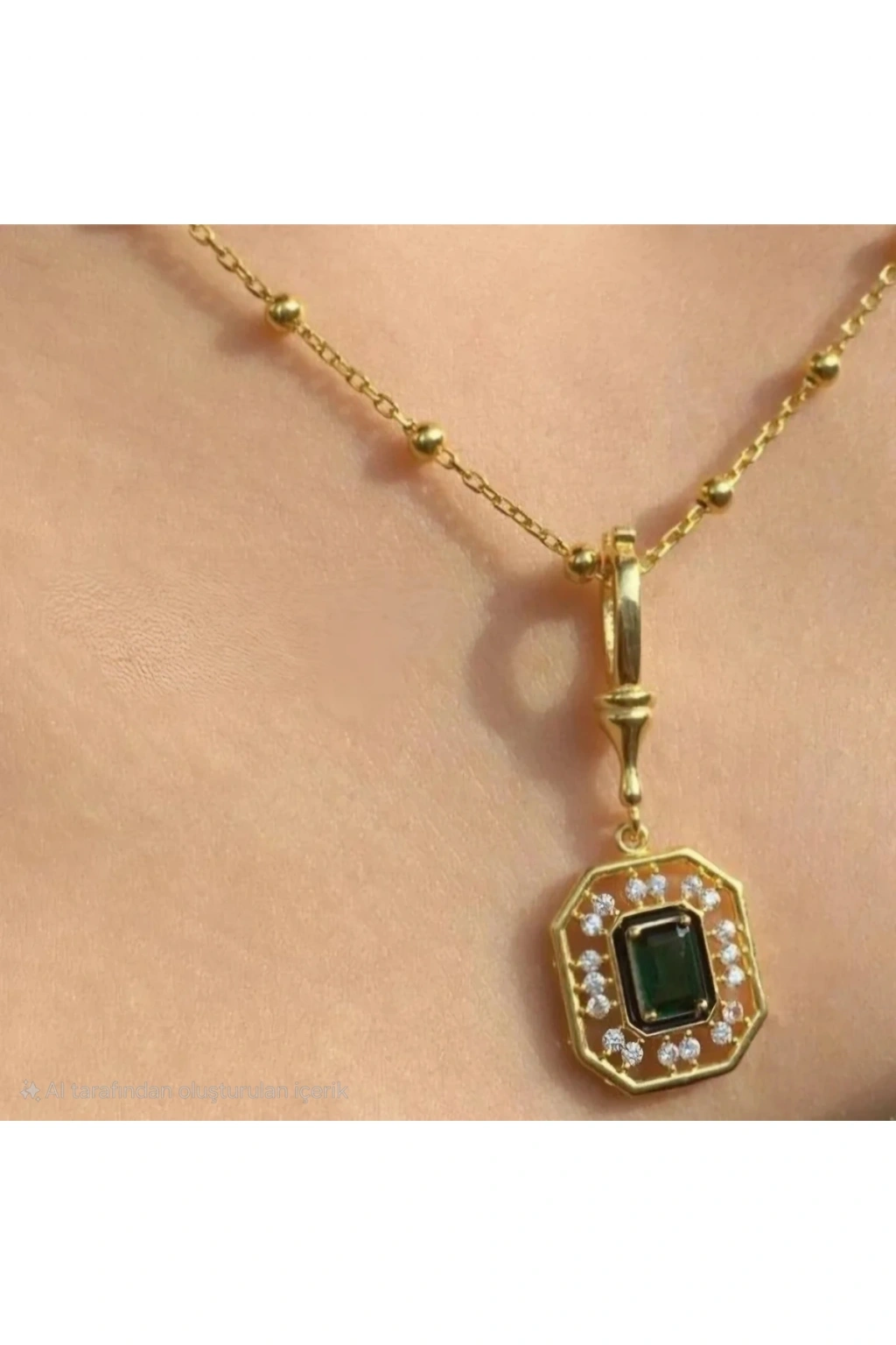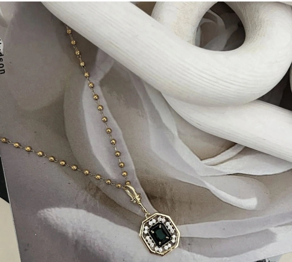 Zarafetin ve Işıltının Buluştuğu Şaheser: Vintage Esintili Zümrüt Yeşili Kolye Göz alıcı bir tasarıma sahip bu vintage esintili kolye, zümrüt yeşili taşın mistik büyüsünü ve pırlanta görünümlü taşların ışıltısını muhteşem bir uyumla bir araya getiriyor.; Altın kaplama çerçevesi, tasarıma lüks ve sofistike bir dokunuş katarken, her detayında zarafet ve incelik saklı.; Klasik ve modern tasarım öğelerinin kusursuz birleşimi, bu özel kolyeyi hem zamansız hem de trend bir aksesuar haline getiriyor.; Günlük stilinize sofistike bir dokunuş eklemek ya da özel anlarınıza büyüleyici bir ışıltı katmak için mükemmel bir seçim.; Kusursuz işçiliği ve göz alıcı tasarımıyla, bu kolye tarzınızı tamamlayan zamansız bir mücevher olacak.; Güçlü ve şık bir duruş sergilemek isteyen kadınlar için ideal bir seçenek! Bu eşsiz tasarımı keşfedin ve ışığınızı yansıtın! Serenay 2.sezon Çelik Zümrüt Yeşili Taşlı Kolye