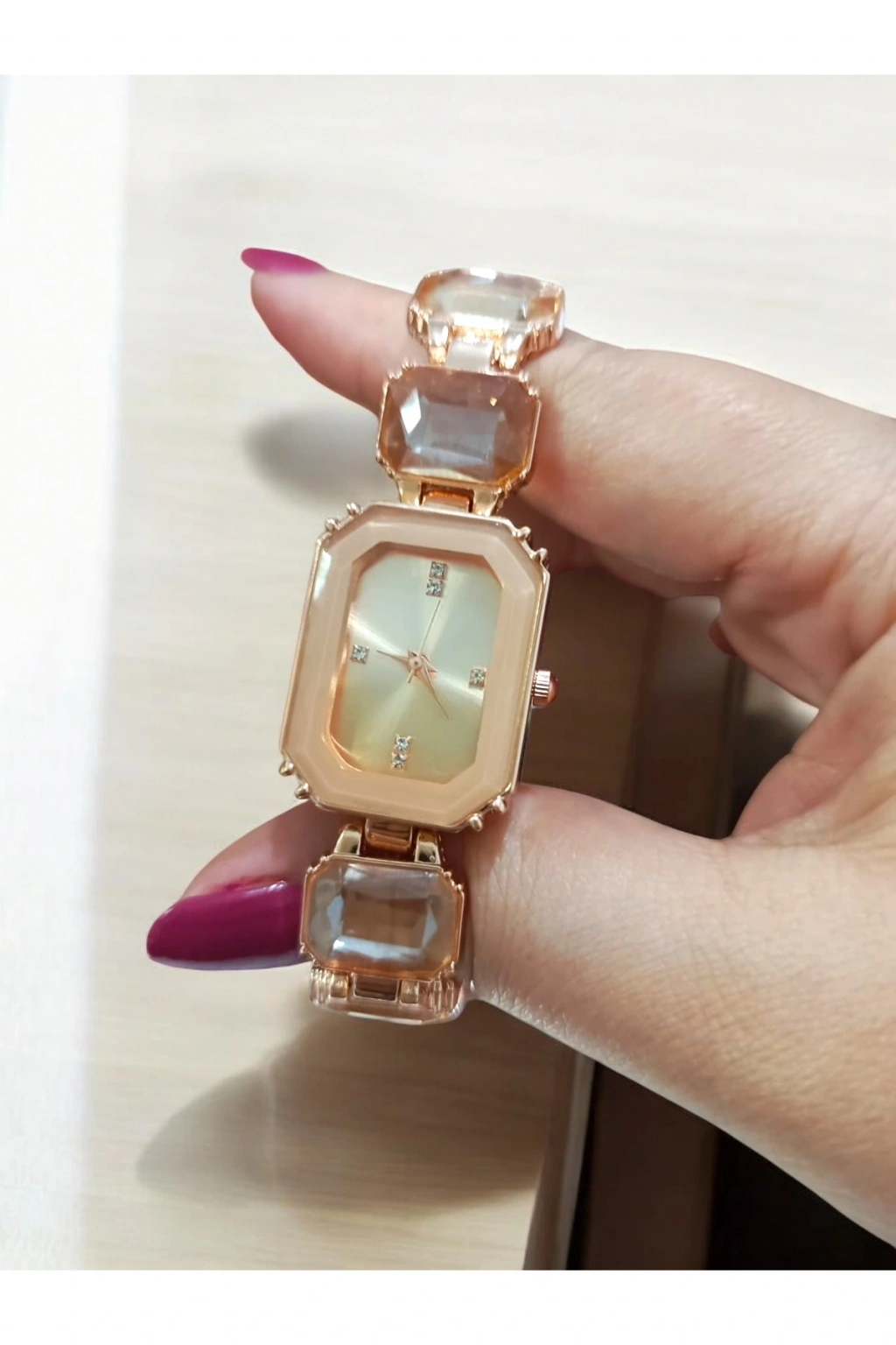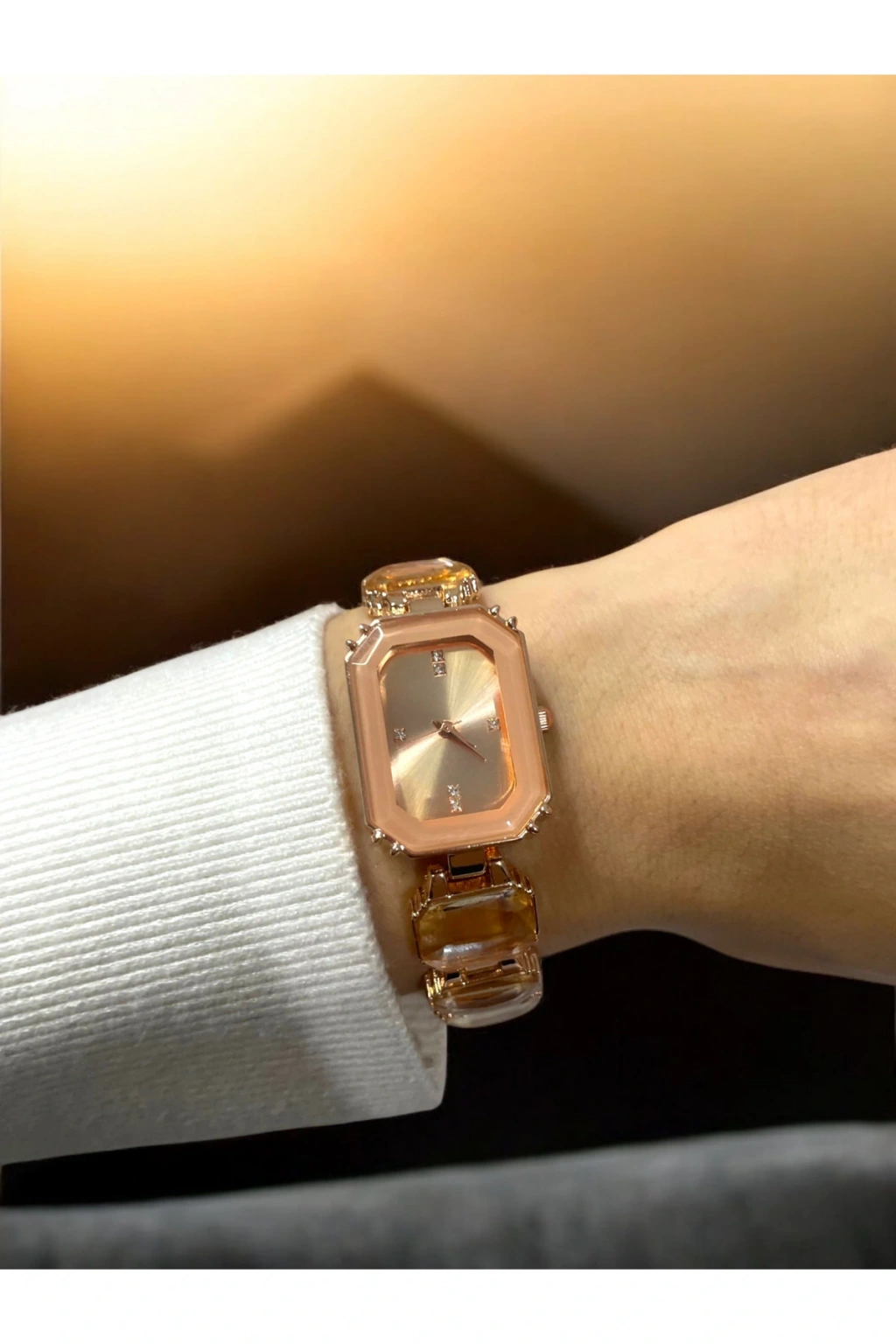 SWRVSK Muadil Model, şıklığı ve zarafeti bir arada sunan benzersiz bir tasarıma sahip olup, her anınıza lüks bir dokunuş katmak için ideal bir tercihtir.; Hem günlük kullanımda hem de özel davetlerde size eşlik edebilecek şekilde tasarlanmış olan bu özel saat, her detayıyla dikkat çekiyor.; Metal gövdesi ve zarif taş detayları, tasarımın zarifliğini ve sofistike havasını pekiştiriyor.; Kadran, dikdörtgen formu ve üzerine işlenmiş ince taş süslemeleriyle göz alıcı bir şıklık sunuyor.; Bilezik kısmı, büyük, ışıltılı kristal taşlardan oluşarak, saatin genel tasarımına zarif bir parlaklık katıyor.; Bu taş detayları, bileğinizde dikkat çekici bir ışıltı yaratırken, aynı zamanda saatin görsel etkisini güçlendiriyor.; Kristal taşların göz alıcı ışıltısı, şıklığınızı tamamlamak için mükemmel bir unsur olup, her ortamda fark yaratmanızı sağlıyor.; SWRVSK Muadil Model, aynı zamanda rahat bir kullanım sunan taş detaylı bileklik tasarımıyla da ön plana çıkıyor.; Hem şık hem de rahat bir kullanım deneyimi sağlayan bu tasarım, uzun süreli kullanımlarda bile konforu ön planda tutuyor.; Metal gövde, zarif taş süslemeli dikdörtgen kadran ve ışıltılı kristal taşlardan oluşan bilezik kısmı, bu saati her anınıza zarafet ve lüks katacak bir aksesuara dönüştürüyor.; Özellikle sofistike tarzı benimseyenler ve özgün bir tarz arayanlar için bu model, hem estetik hem de fonksiyonel anlamda mükemmel bir seçenek sunuyor.