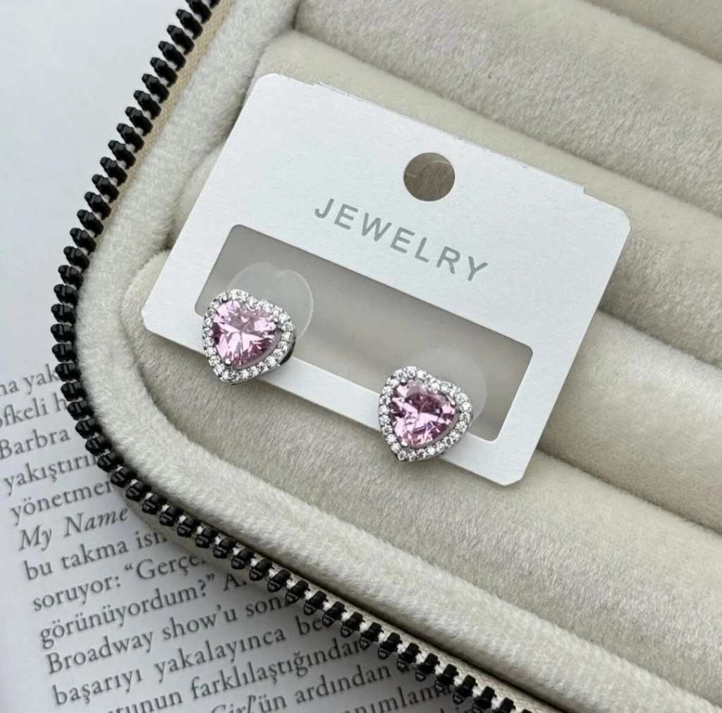 Aşkın ve zarafetin ışıltısını taşıyan bu özel tasarım kalp küpe, Swrvski model ilhamlı kristal taşlarıyla göz kamaştırır. Gümüş rengi rodyum kaplama yüzeyi, pembe kalp kesim taşla birleşerek zarif ve romantik bir görünüm sunar. Parlak taş dizilimi, ışığı her açıdan yansıtarak sofistike bir parıltı yaratır.