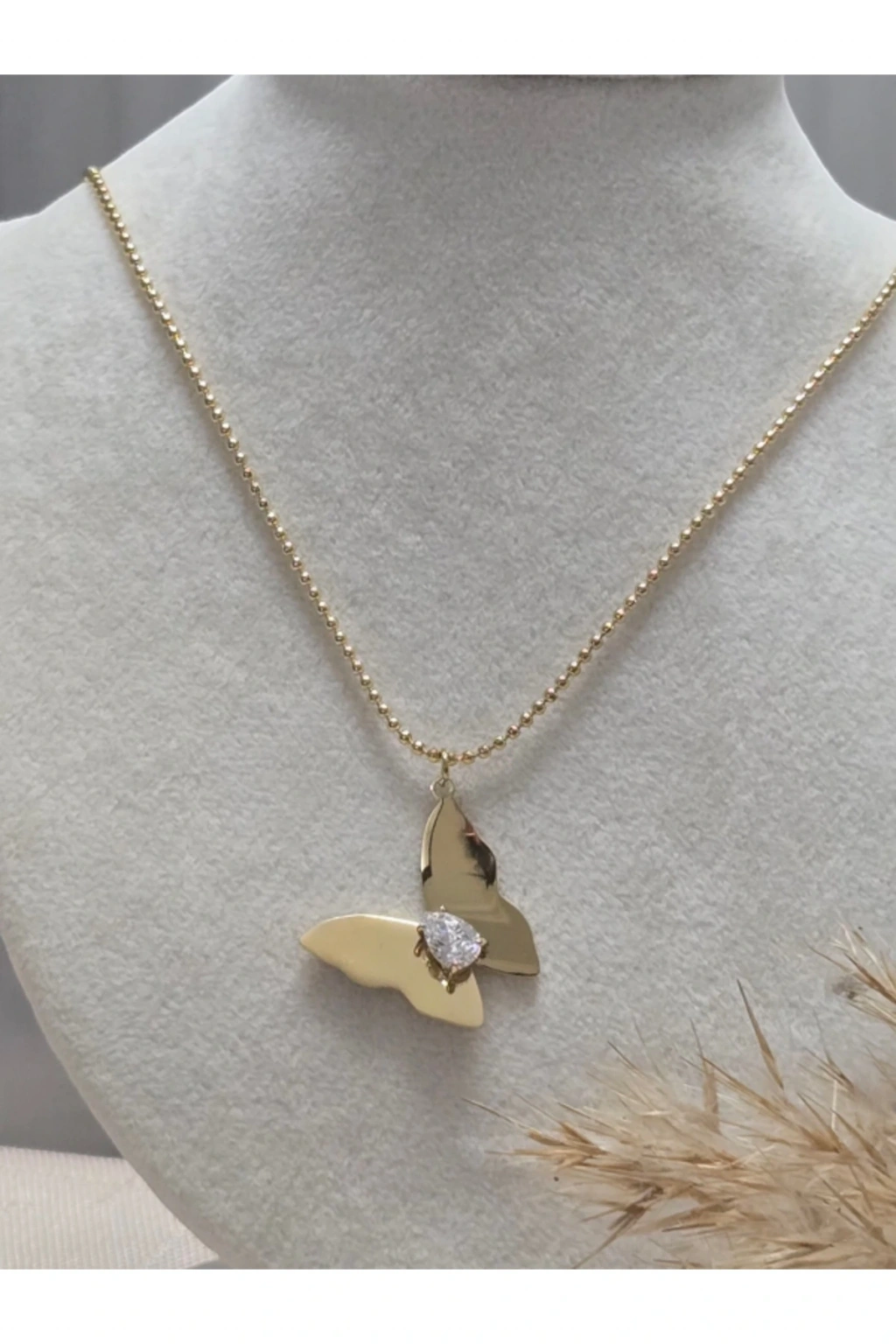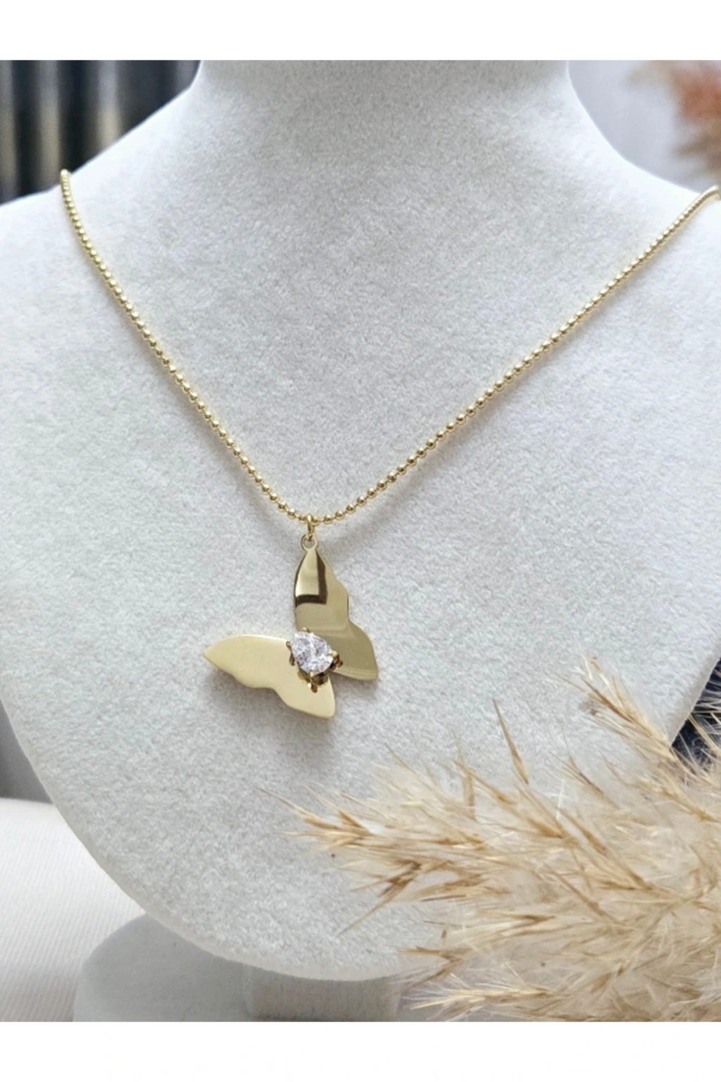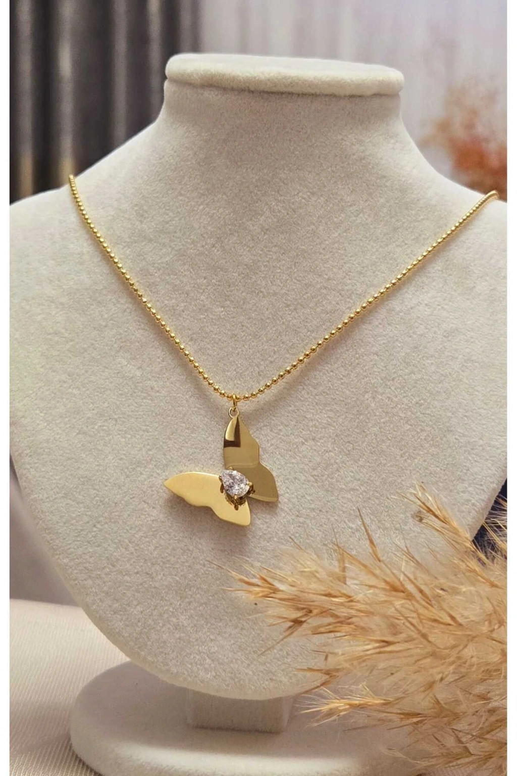Taşlı Kelebek Detaylı Altın Çelik Kolye Şıklığın ve zarafetin buluştuğu Zirkon Taşlı Kelebek Detaylı Altın Çelik Kolye , Öne Çıkan Özellikler: ✔ **Paslanmaz Çelik: Kararmaz ✔Zirkon Taşlı: Işıltılı Zirkon Taşlar ✔ **Kelebek Detayı:Zarif ve romantik ✔ **Altın Kaplama: ✔ **alerjenik: Hassas ciltler için uygundur Minimalist ve düzenli yaşam tarzıyla tüm kombinlerinize uyum sağlayacak bu özel kolye, kendinize veya sevdiklerinize anlamlı bir hediye alternatifi sunuyor!