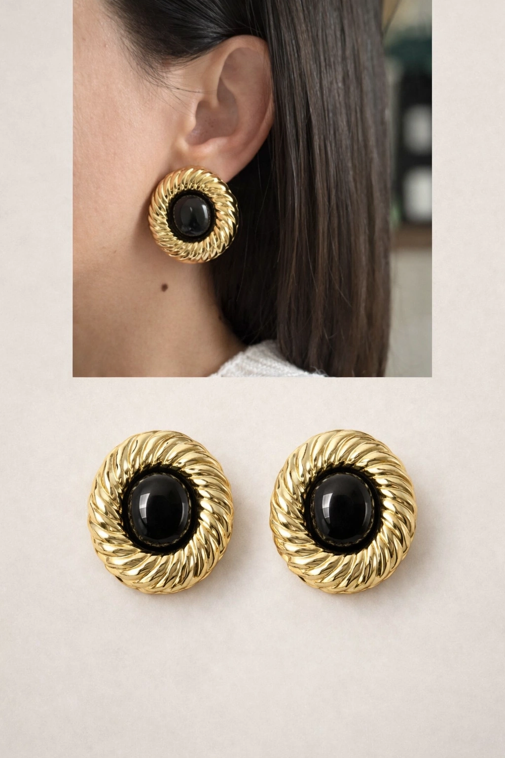 Güçlü ve sofistike stilin en şık yansıması! Vintage esintili burgu formu ve dikkat çekici siyah taş detayıyla tasarlanan bu gold küpe, zamansız şıklığı modern dokunuşlarla buluşturur. Klasik ve iddialı görünümü sayesinde her kombine karakter katar.