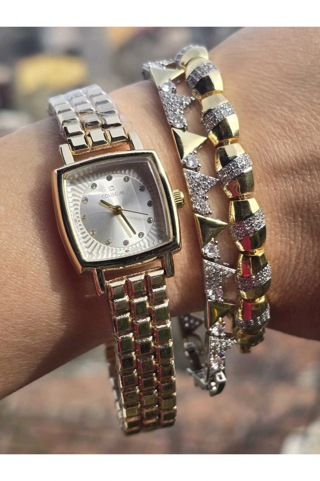 Vintage Model Kare içi taşlı, marka muadili bir kadın kol saati, şıklığı ve zarafetiyle dikkat çekiyor.; Altın ve gümüş renk seçenekleriyle sunulan bu saat, çelik kordon ve taş detaylarıyla CEO uyumlu bir aksesuar olarak öne çıkıyor.; Hem iş dünyasında hem de özel günlerin saklandığı zarif bir seçenek sunuyor.; Kare tasarımı ve taşlı detayları, klasik bir görsellik ile modern dokunuşları birleştiriyor.; Hem fonksiyonel hem de şık bir tercih olan bu model, stilinize modern ve şik bir görünüm kazandırıyor.
