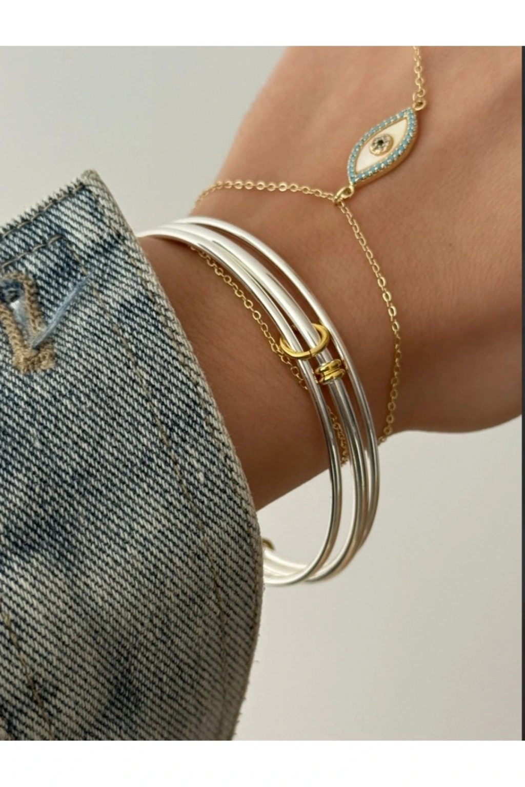 VIP Serisi Üçlü İç İçe Halka Kelepçe Açıklama: Modern çizgilerin ve zamansız şıklığın buluştuğu VIP Serisi Üçlü İç İçe Halka Kelepçe, stilini zarif ve güçlü detaylarla tamamlamak isteyenler için tasarlandı.; Parlak gümüş ve altın tonlarının uyumuyla hazırlanan bu özel model, iç içe geçmiş formuyla bağlılığı ve güçlü kadın ruhunu simgeliyor.; Özellikle CEO, yönetici ve iş dünyasının dinamik kadınlarına hitap eden bu tasarım, günlük stilinizden özel toplantı kombinlerinize kadar her anınıza eşlik edecek modern ve zarif bir aksesuar.; ✨ VIP özel seri ✨ Üçlü iç içe geçmiş halka form ✨ Parlak gümüş & altın ton detay ✨ Günlük ve profesyonel stil uyumlu Naaksesuar’ın zarif ve güçlü duruşunu yansıtan bu modelle, bileğinizde stilinizin imzasını bırakın
