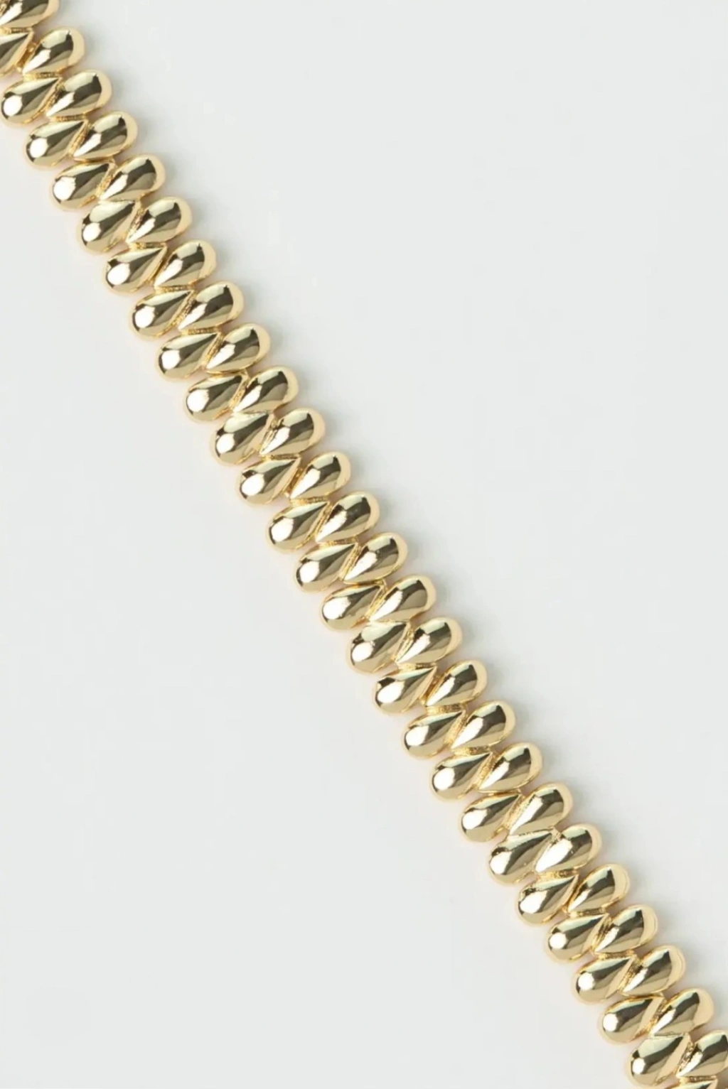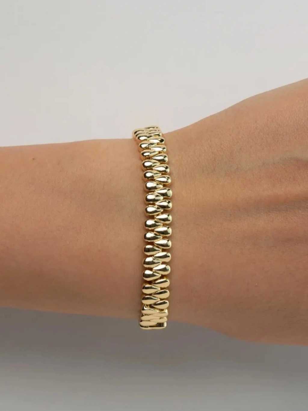 Yumuşak hatlara sahip özel zincir tasarımı, bilekte akıcı ve estetik bir görünüm sunarken konforlu yapısıyla gün boyu rahat kullanım sağlar. Minimal ama dikkat çekici tasarımı sayesinde tek başına güçlü bir stil oluşturabilir ya da diğer takılarla kombinlenebilir.