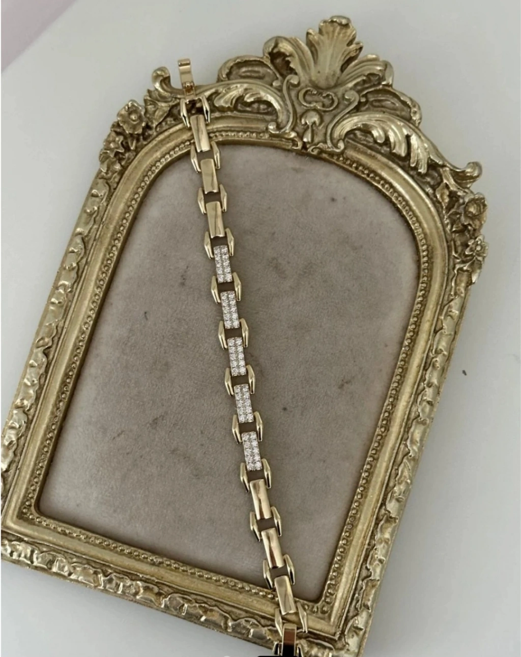Günlük kombinlerden özel davet şıklığına kadar her ortamda rahatlıkla kullanılabilen bu özel tasarım bileklik, kaliteli kaplama yapısı sayesinde uzun süre parlaklığını korur. Hafif ve ergonomik yapısı sayesinde gün boyu konforlu kullanım sunar.