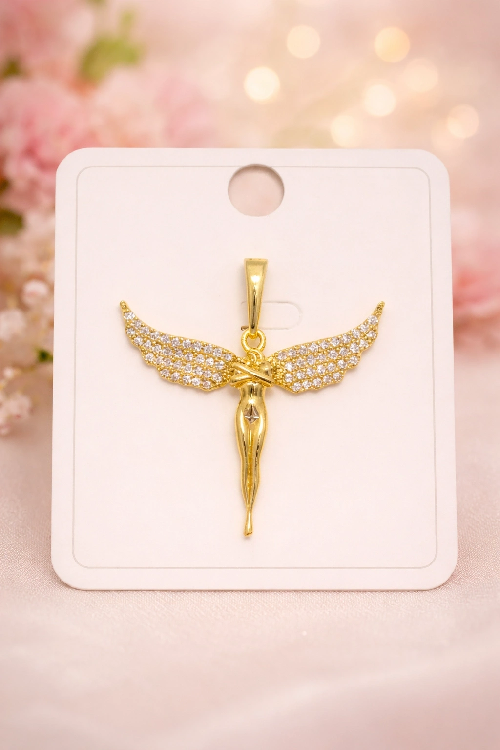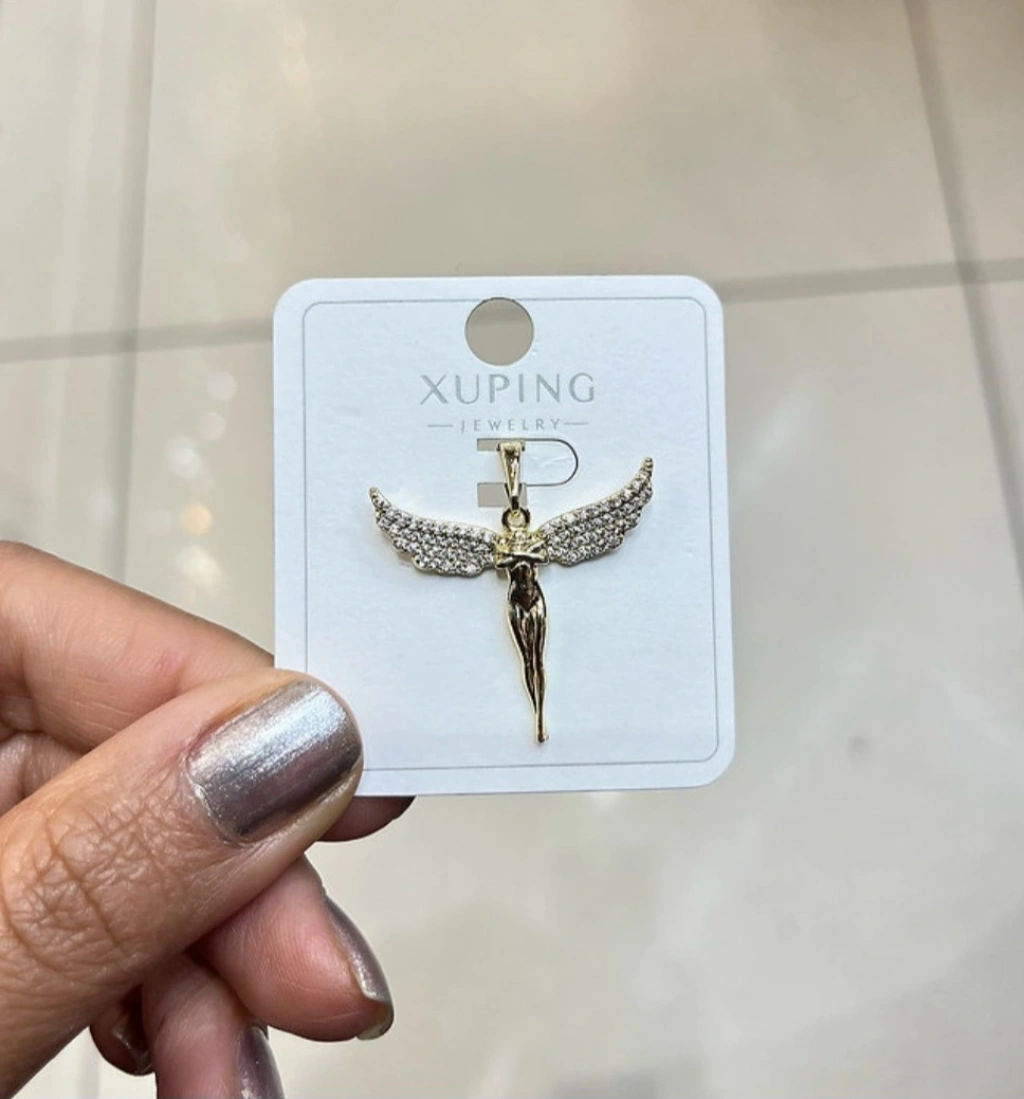 xuping kolye ucu, 14k altın kaplama kolye ucu, melek kolye ucu, kanatlı kolye, taşlı kolye ucu, gold kolye ucu, çelik kolye ucu, kadın kolye