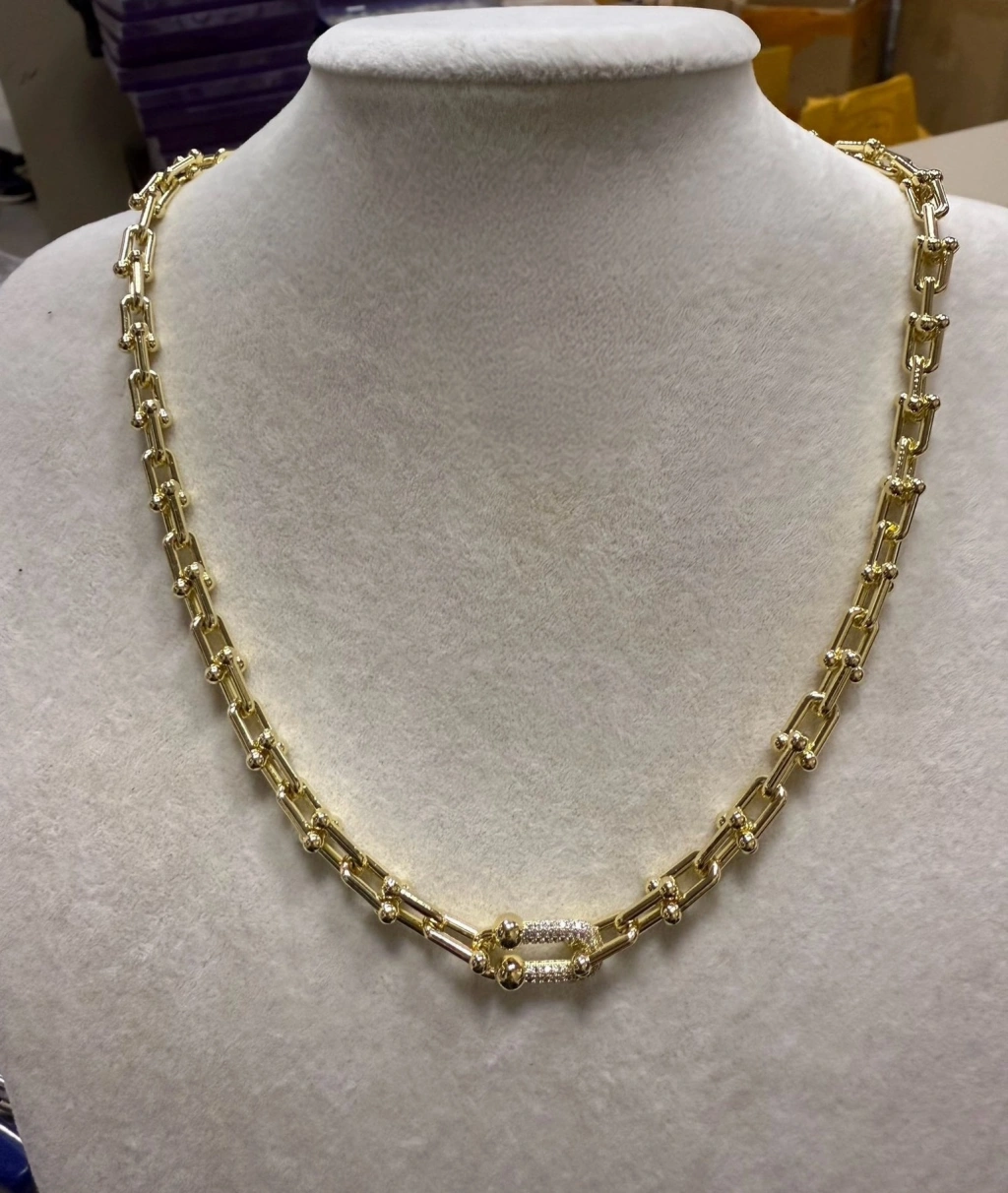 Zarif detaylar ve güçlü tasarım çizgileriyle öne çıkan Xuping gold renk kolye, stilinize sıcak ve lüks bir dokunuş katıyor. Parlak gold yüzeyi ve taş detaylı özel formu sayesinde boynunuzda göz alıcı bir ışıltı sunar.