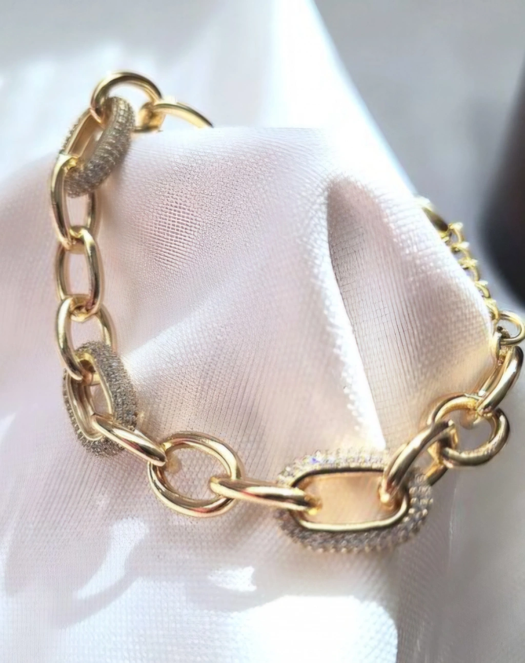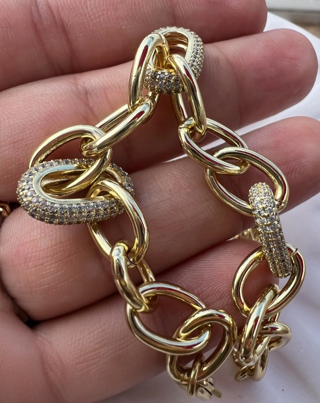 ✨ Gold Taş Detaylı Kalın Zincir Bileklik