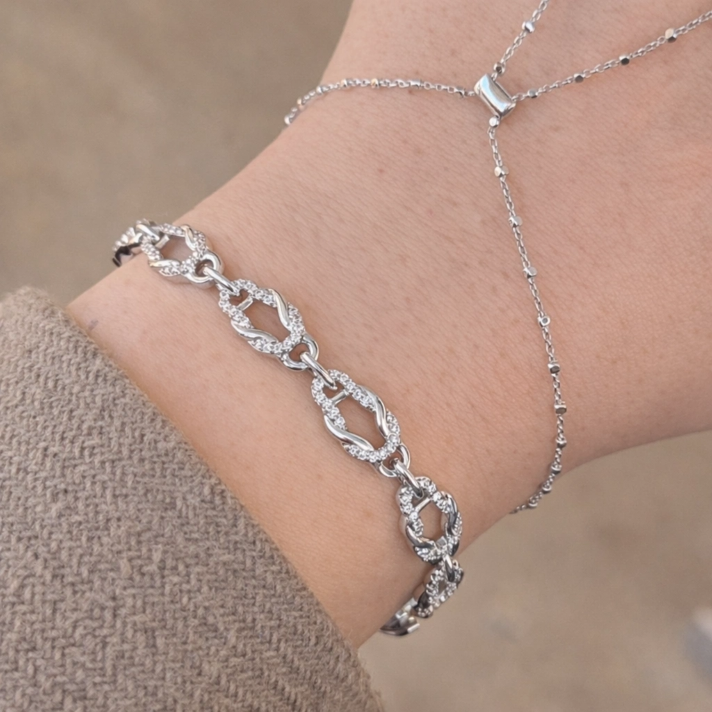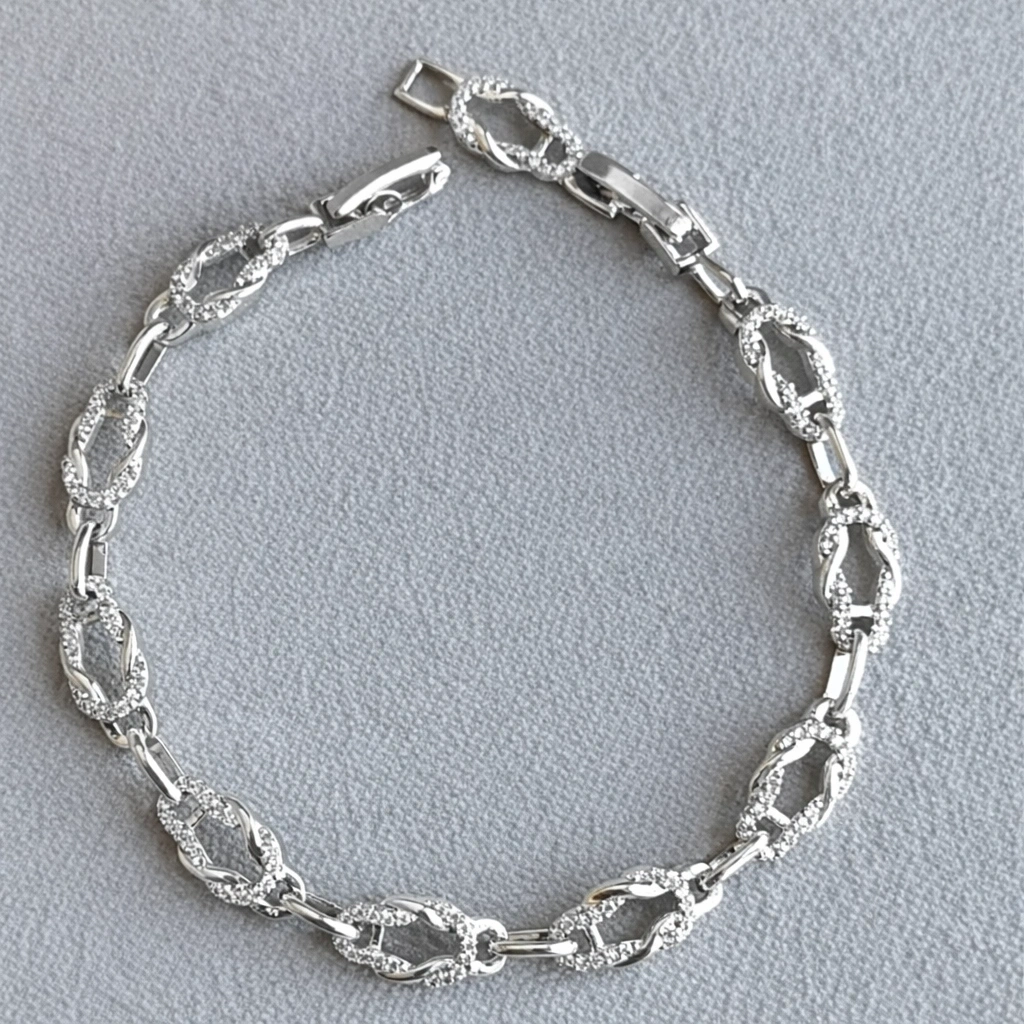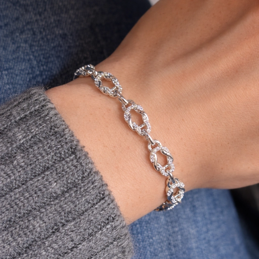 xuping bileklik, gümüş renk bileklik, düğüm model bileklik, taşlı bileklik, zarif kadın bileklik, modern takı, şık bileklik modelleri