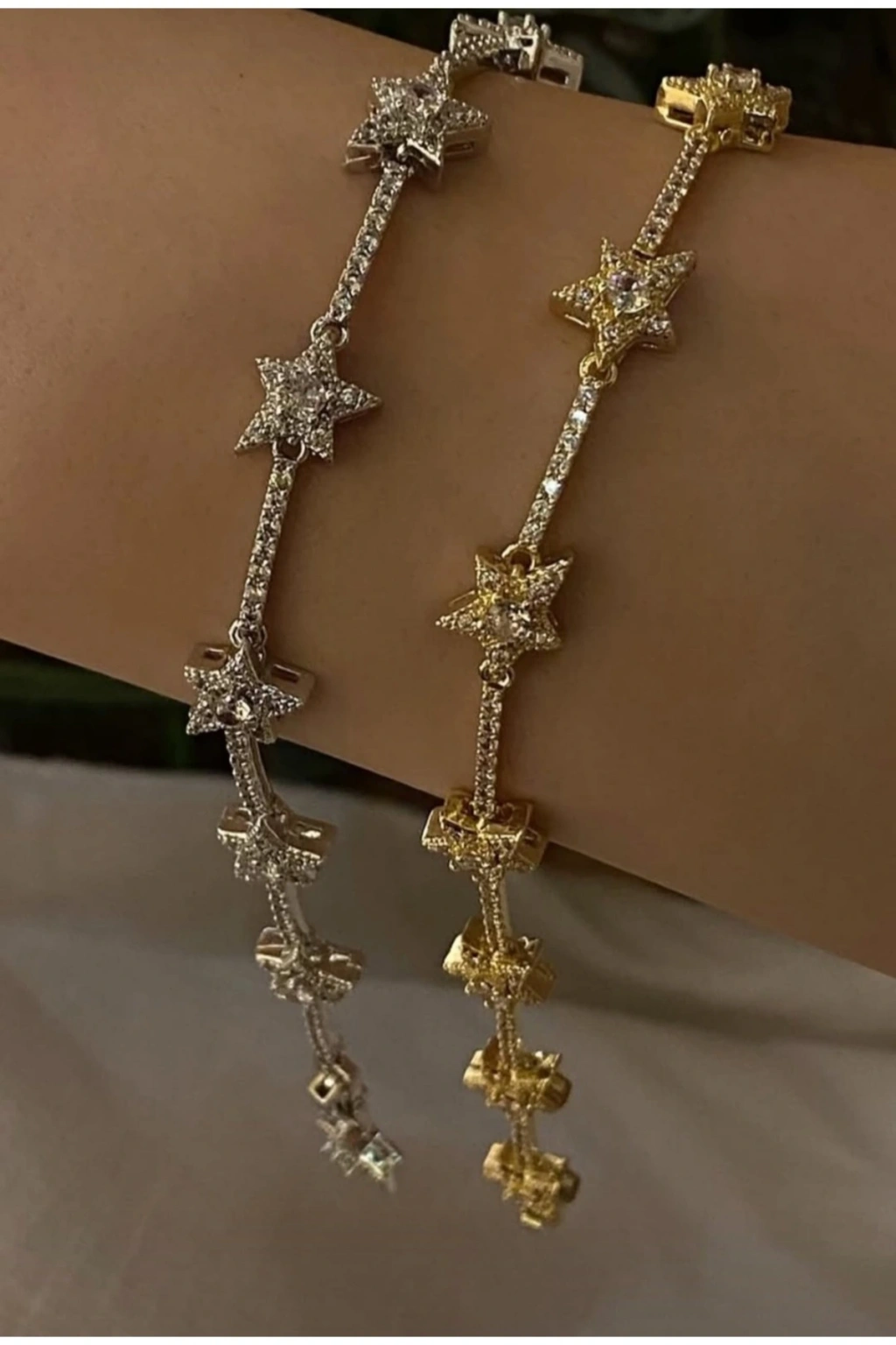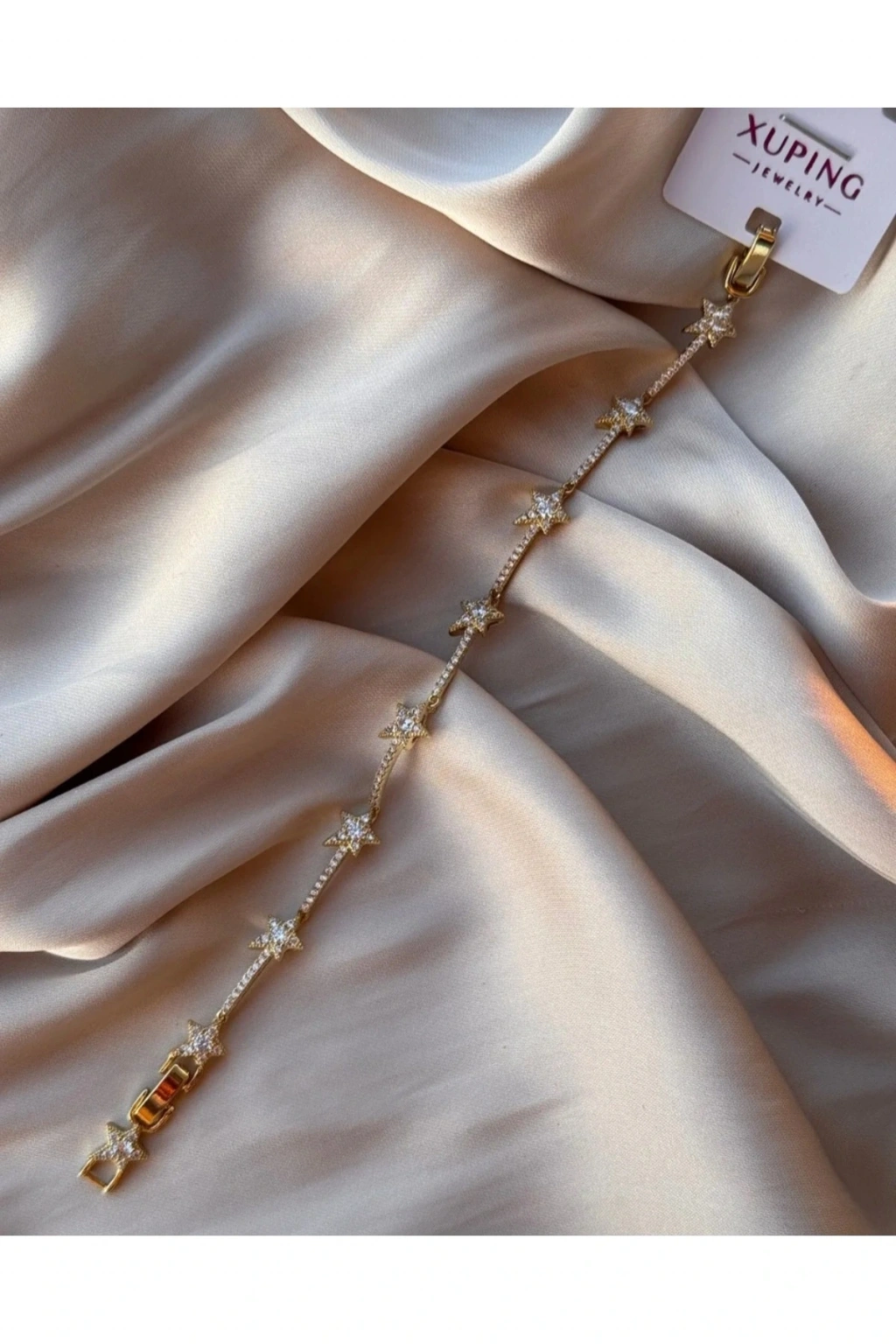 Xuping Özel Seri Taşlı Yıldız Model Künye Bileklik Özel seri Xuping tasarımıyla zarafeti ve ışıltıyı bir araya getiren bu yıldız model künye bileklik, modern ve şık detaylarıyla bileğinizde göz kamaştırıyor.; Tamamı taş işlemeli yıldız figürleri ve zarif taşlı zincir detayıyla ışığı her açıdan yansıtarak stilinize değer katar.; Su ve kimyasala dayanıklı kaplaması sayesinde uzun ömürlü kullanım sunar.; Günlük kombinlerden özel davetlere kadar her ortamda rahatlıkla kullanılabilir.; Farklı künye ve bilekliklerle uyumlu kombinlenebilir yapısıyla stilinizi tamamlayın.; • Özel Seri Xuping Tasarım • Taşlı Yıldız Figür Detaylı • Su ve Kimyasala Dayanıklı Kaplama • Modern ve Işıltılı Şık Görünüm Naaksesuar koleksiyonlarında ayrıcalıklı yerini alacak bu model, stil sahibi kadınların favorisi olacak.