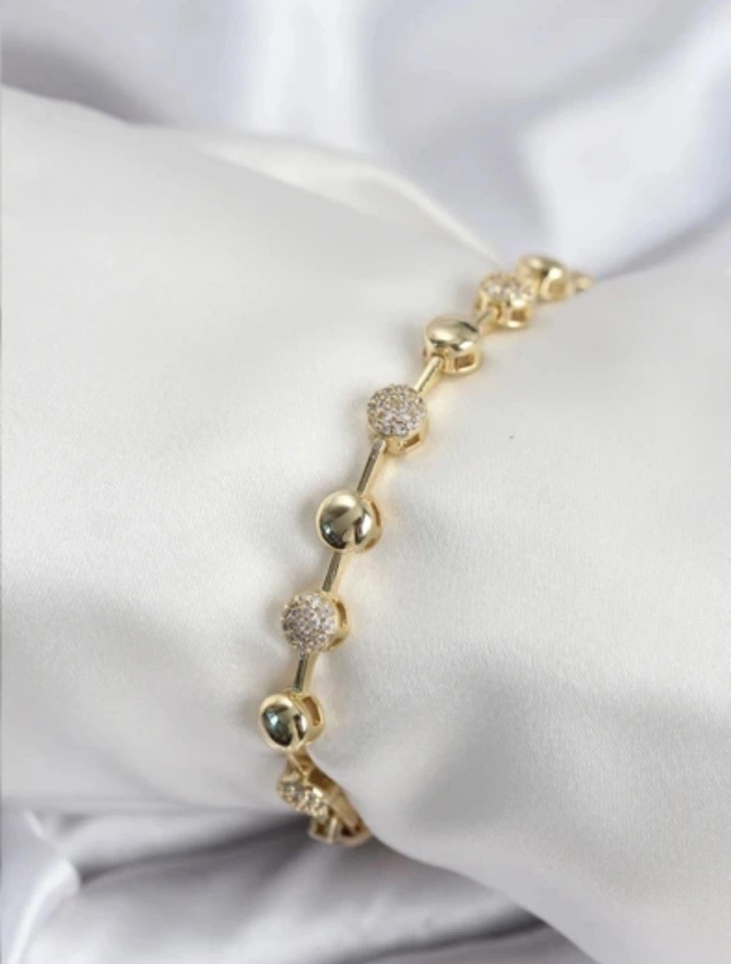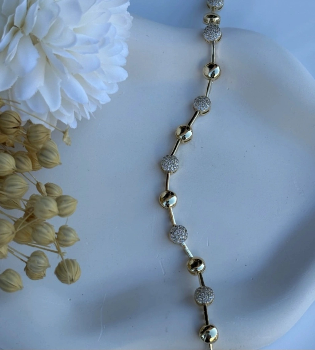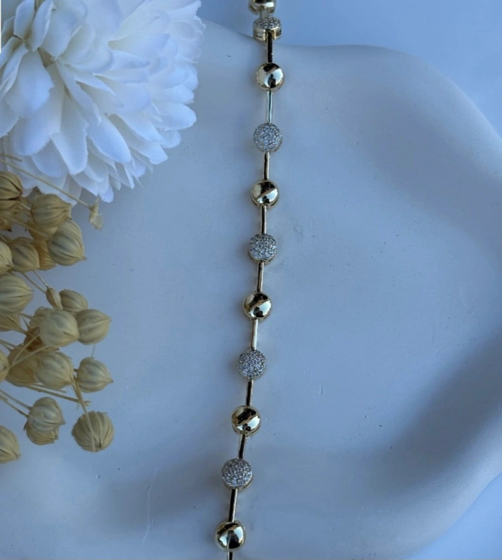 Naaksesuar’ın şıklık anlayışını yansıtan bu özel Xuping bileklik, modern çizgilerle klasik zarafeti buluşturur. Parlak gold renk kaplaması ve aralıklı yerleştirilmiş dorika toplar ile taşlı detaylar, bileğinize ışıltılı ve sofistike bir görünüm kazandırır.