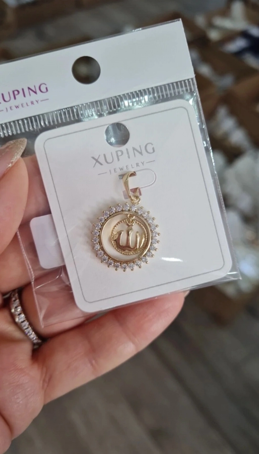 Xuping kolye ucu, Allah yazılı kolye, taşlı kolye ucu, altın kaplama kolye, dini kolye modelleri, yuvarlak kolye ucu, gold kolye ucu, zirkon taşlı kolye, kadın kolye aksesuar