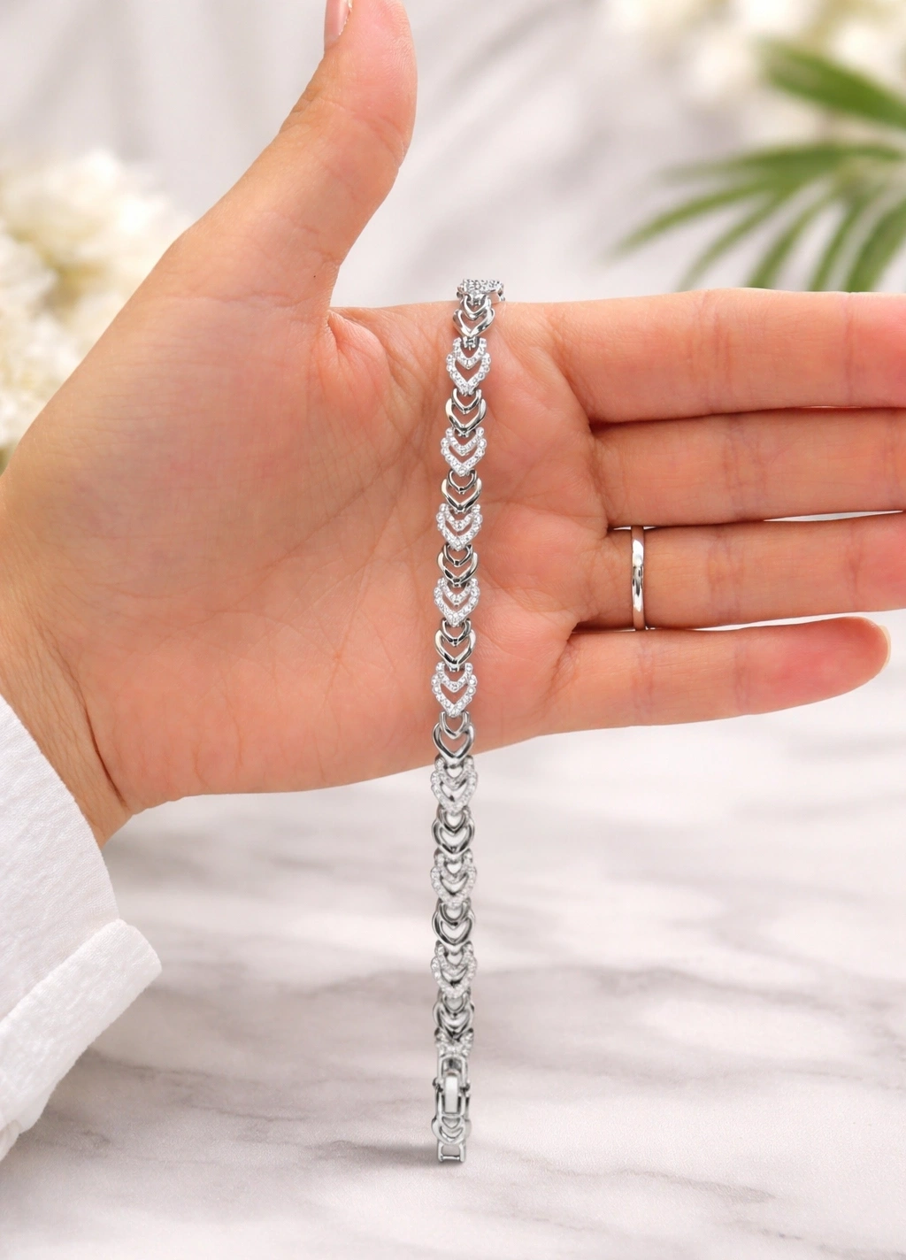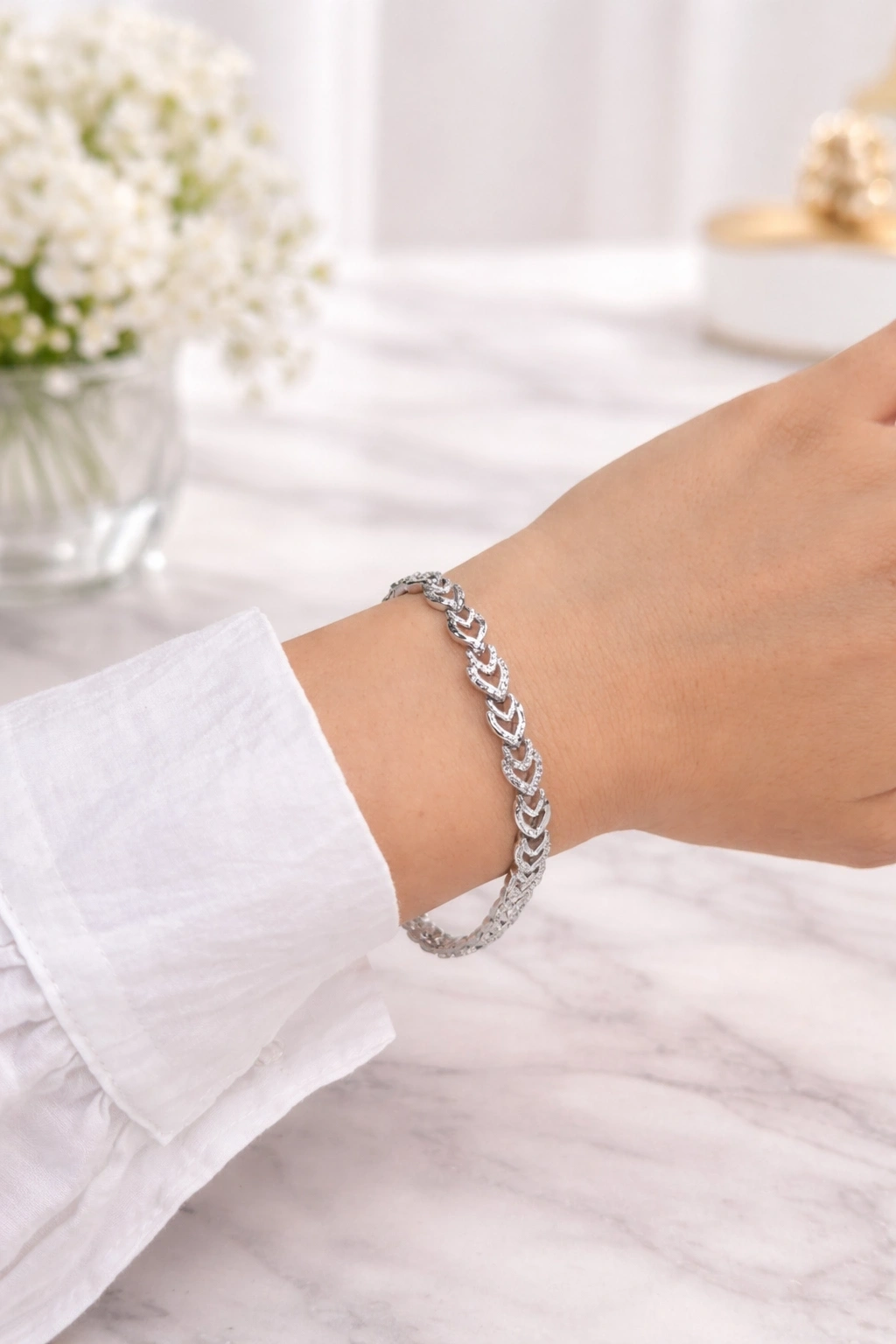 Xuping Taşlı Kalp Detaylı Gümüş Renk Bileklik – Zarafetin Işıltılı Hali