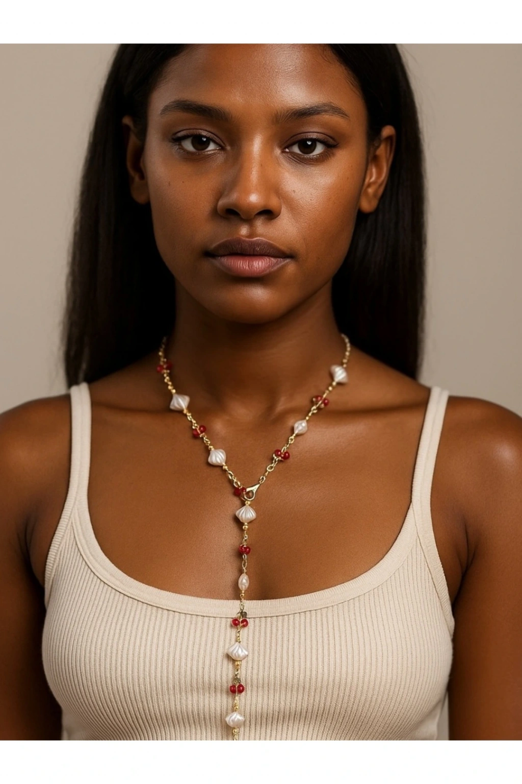 Tam Tur Kirazlı Y Kolye Zarafeti ve modern şıklığı bir araya getiren bu özel seri Tam Tur Kirazlı Y Kolye, gold zincir üzerine yerleştirilmiş inci formlu detaylar ve kırmızı boncukların eşsiz uyumuyla tasarlandı.; Y formuyla boyun hattını zarifçe vurgularken, hareketli dizaynı ile her stile ışıltı katıyor.; VIP kaplama uygulanarak, uzun ömürlü kullanım ve solmayan parlaklık sağlanmıştır.; Su ve kimyasallardan uzak tutuldugu sürece günlük ve özel davet kombinlerinin vazgeçilmez tamamlayıcısıdır.; Antialerjik özellik taşır.; Her detayı özenle işlenen bu tasarım, minimal ama dikkat çekici takı sevenler için ideal bir seçimdir.; Öne Çıkan Özellikler: Gold kaplama zincir Kırmızı boncuk ve inci detaylı tasarım Y formunda özel seri dizayn Suya ve kimyasala uzak tutulması ı, antialerjik yapı Şimdi stilinize özel dokunuş katmak için keşfedin!
