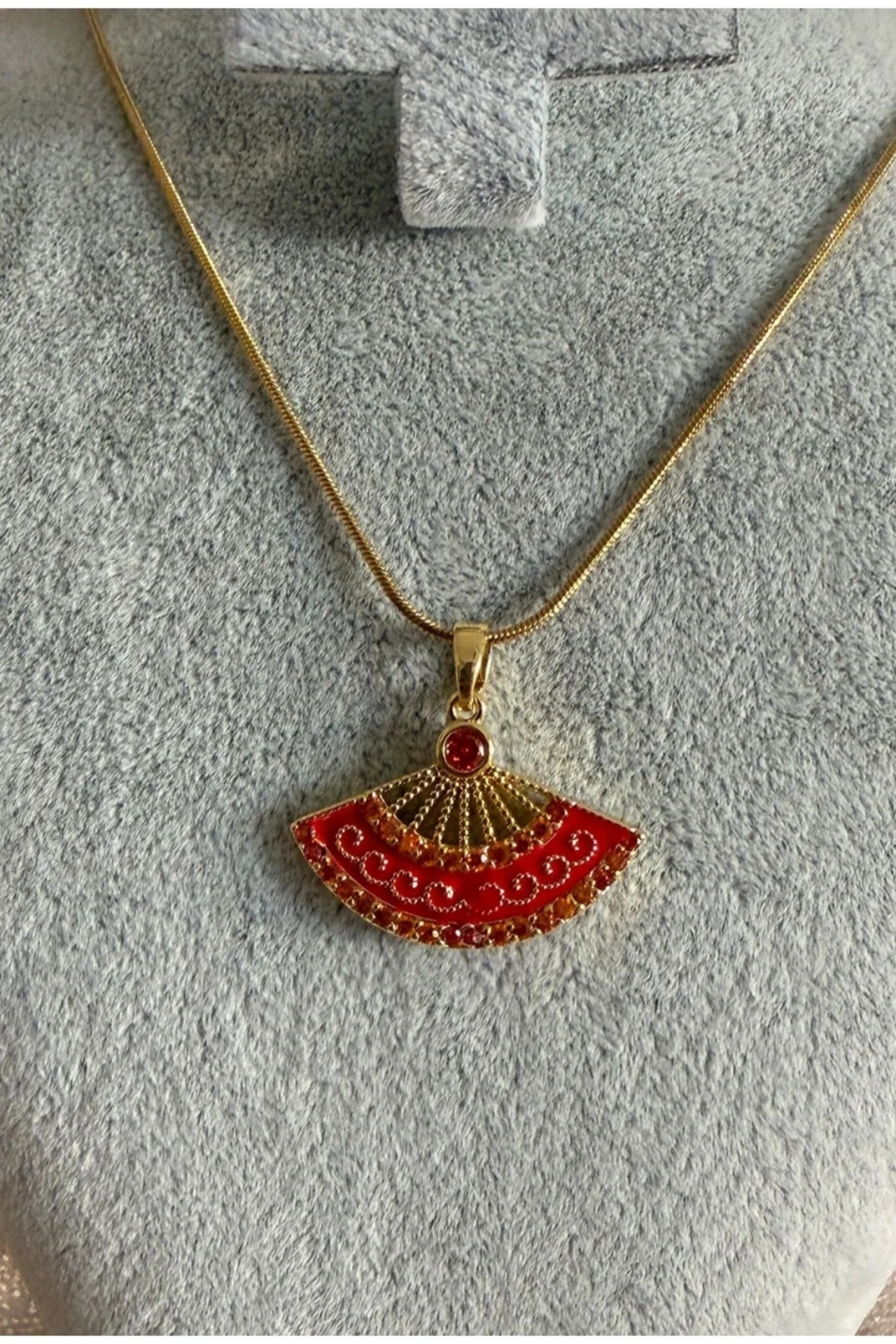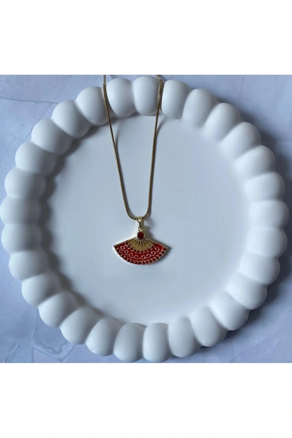 Yelpaze Model Kırmızı Taşlı Gold Çelik Kolye Şıklığı ve zarafeti bir araya getiren bu yelpaze model kolye, kırmızı taşların göz alıcı ışıltısıyla stilinizi tamamlıyor.; 316L paslanmaz çelik zinciri ile suya ve kimyasallara dayanıklıdır.; Antialerjik özelliği sayesinde her cilt tipine uyum sağlar.; Gold rengi zincir ve kırmızı taşlı detaylar, özel davetlerden günlük kullanıma kadar her kombinle uyumlu modern bir duruş sunar.; Naaksesuar kalitesiyle hem kendiniz hem de sevdikleriniz için şık ve anlamlı bir hediye alternatifi.; ✨ Ürün Özellikleri: 316L çelik zincir ve kolye ucu Kırmızı taşlı gold yelpaze tasarım Su ve kimyasal dayanımı Antialerjik yapı Modern ve zarif görünüm Naaksesuar imzasıyla stilinize özel dokunuş!