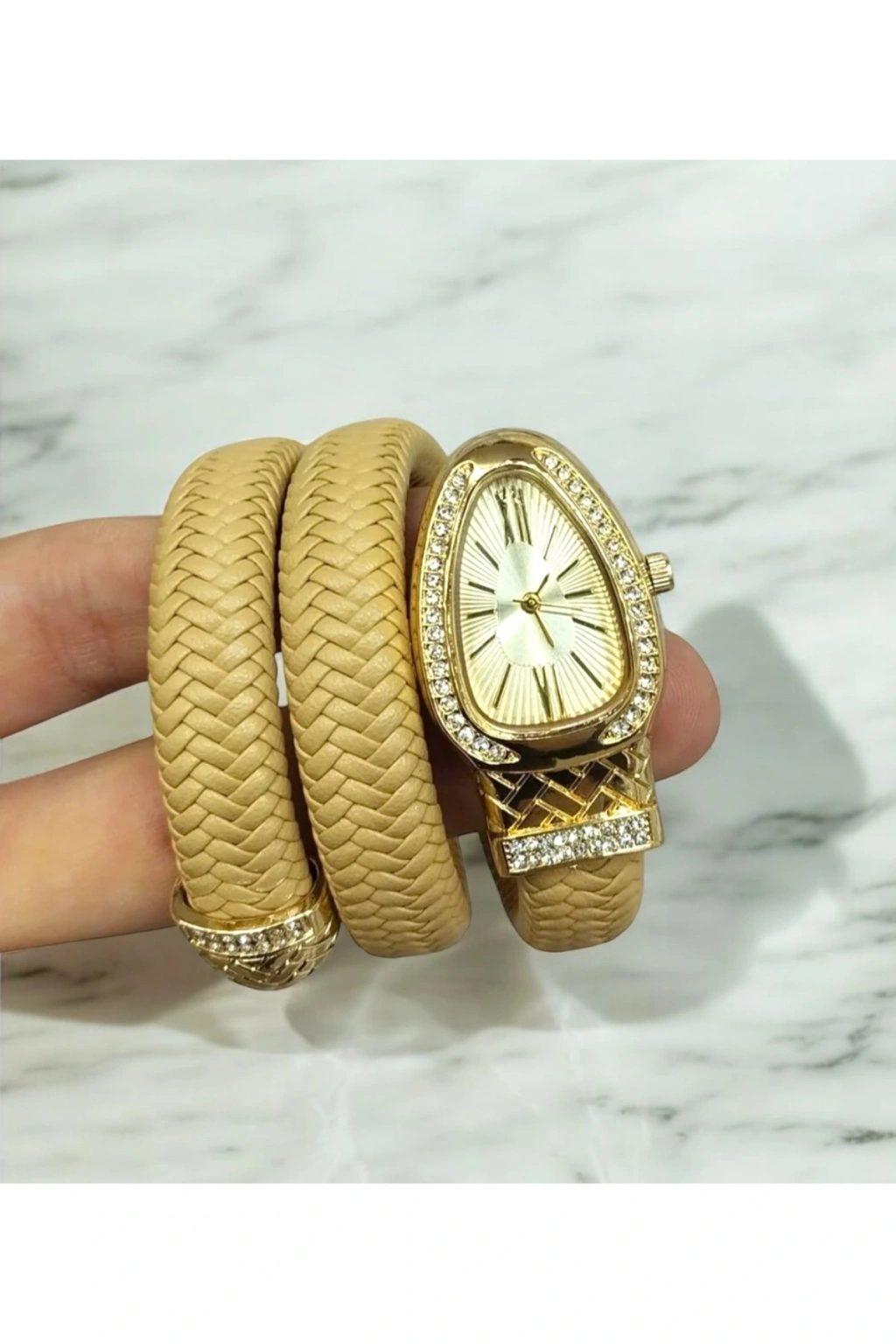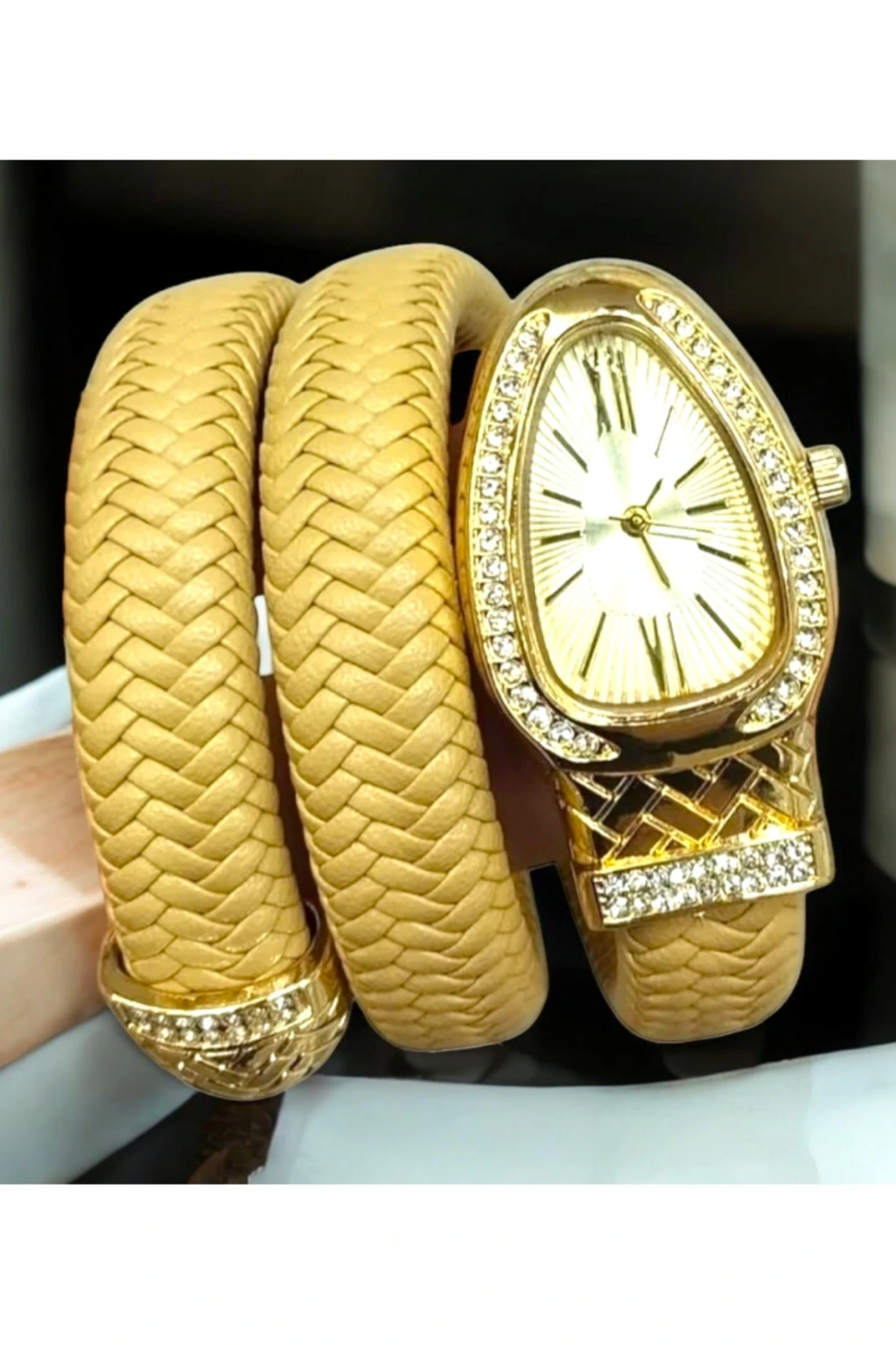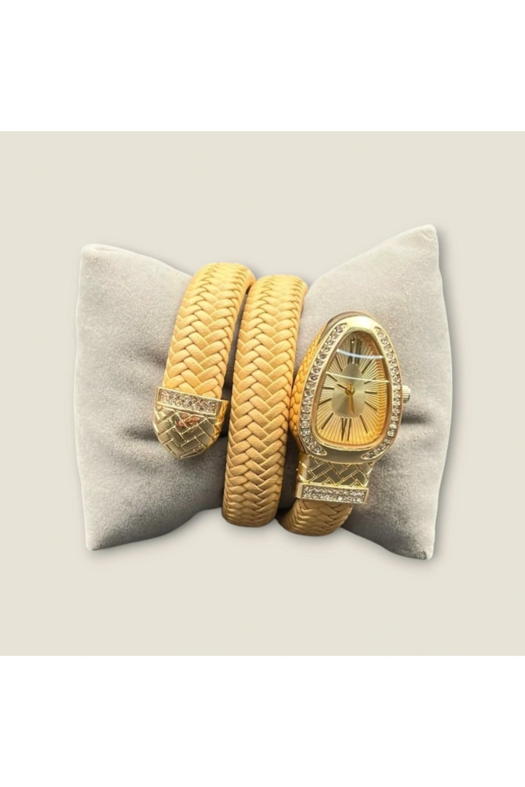 - Zarif tasarımıyla dikkat çeken bu kadın kol saati, çelik kasa materyali sayesinde dayanıklılığı ve şıklığı bir arada sunar.; Hasır kordon materyali ile hem modern hem de klasik tarzları harmanlayarak her türlü kıyafetle uyum sağlar.;renkli kordonu, canlılık katarken aynı zamanda farklı zevklere hitap eder.; Ekstra esnek yapısı sayesinde bileğinize mükemmel uyum sağlar ve konforlu bir kullanım sunar.; 3 atm su geçirmezlik özelliğiyle günlük yaşamda karşılaşabileceğiniz hafif su sıçramalarına karşı koruma sağlar.; 20-30 mm arasında değişen kasa çapı, zarif ve sofistike bir görünüm kazandırırken rahatlıkla takılabilir.; Düz cam şekli ve cam tipi, net ve okunaklı zaman göstergeleri için idealdir; renk ise saatin genel estetiğini tamamlar.; Altın rengi kasa detaylarıyla lüks hissiyatını artırarak özel günlerde veya resmi ortamlarda tercih edilebilir.; Web color olarak da adlandırılan online renk seçeneği, saatin gerçek tonunu yansıtarak doğru seçim yapmanızı kolaylaştırır Marka Model muadili kadın kolsaati.