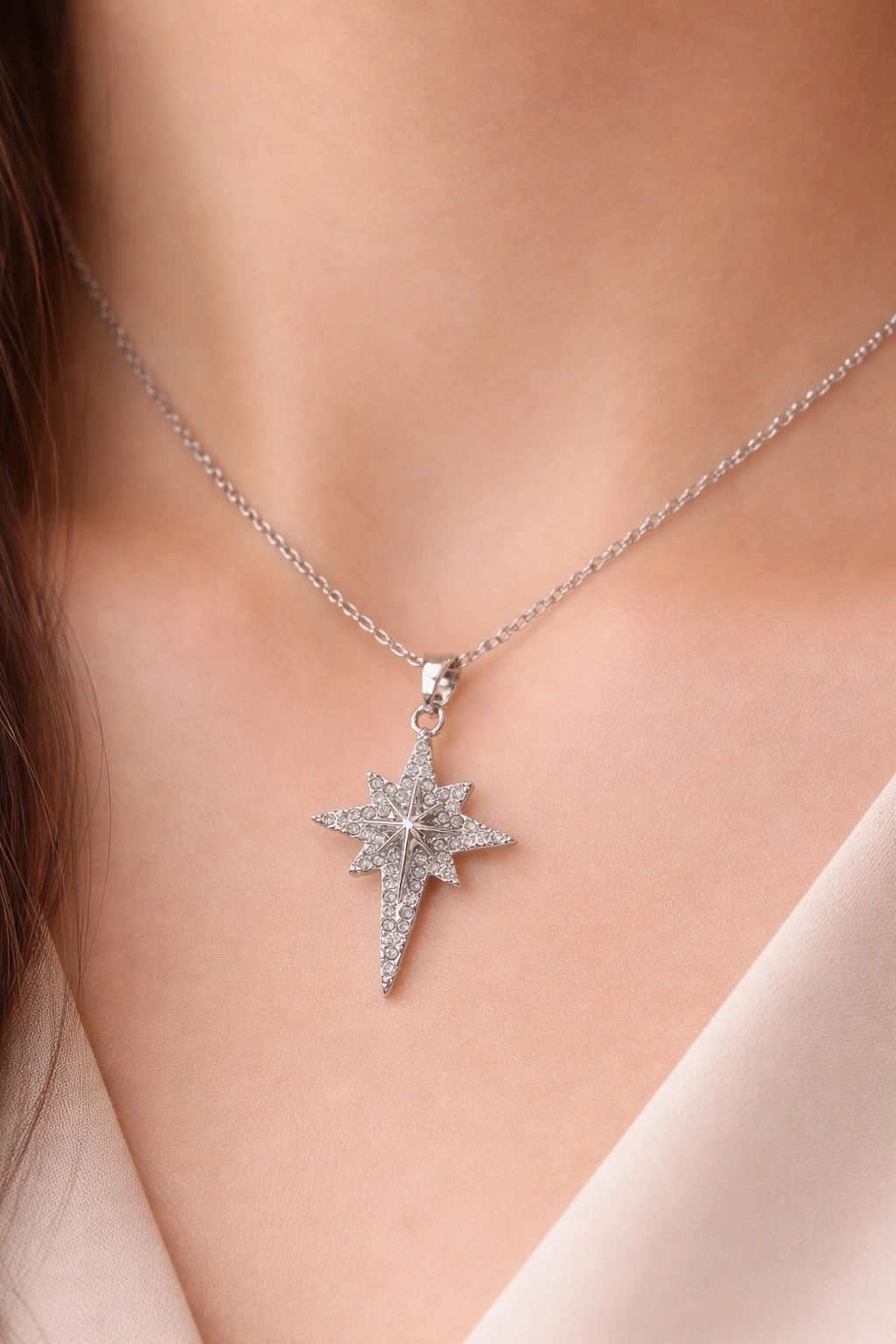 316L çelik kolye, paslanmaz çelik kolye, yıldız kolye, taşlı kolye, gümüş renk kolye, kadın kolye, zarif kolye, minimal kolye, şık kolye, hediye kolye, naaksesuar kolye