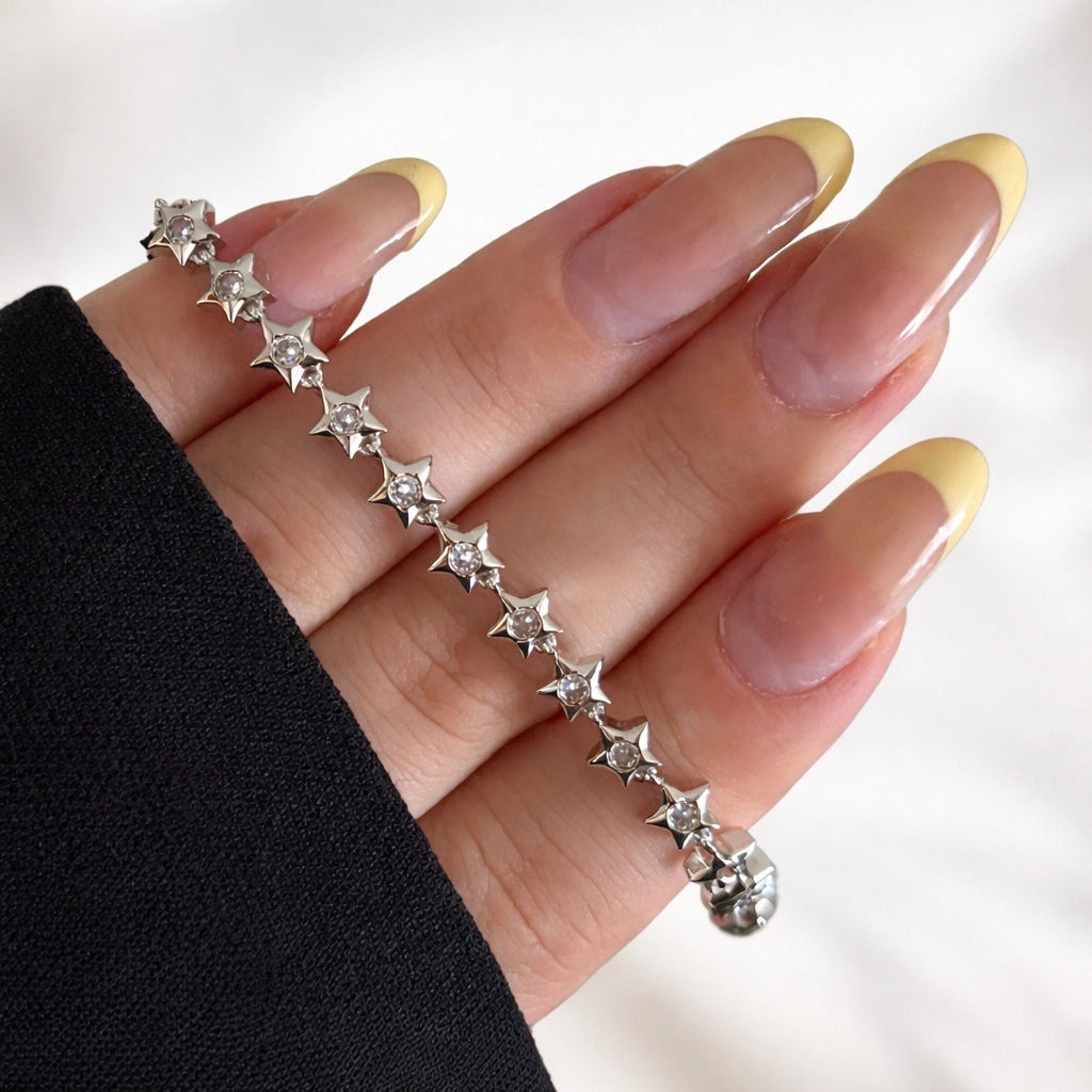 yıldız bileklik, taşlı bileklik, gümüş renk bileklik, zarif kadın bileklik, modern bileklik, günlük bileklik, şık bileklik, Naaksesuar bileklik